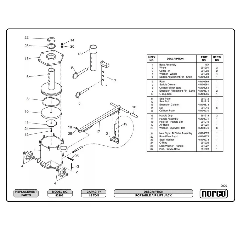 This heavy-duty air-powered hydraulic jack is designed for lifting trucks, farm equipment, construction machinery, and buses, making it an essential tool for garages and repair shops. Its rugged construction, precise control, and portability make it ideal for crowded workspaces and single-point lifting applications.