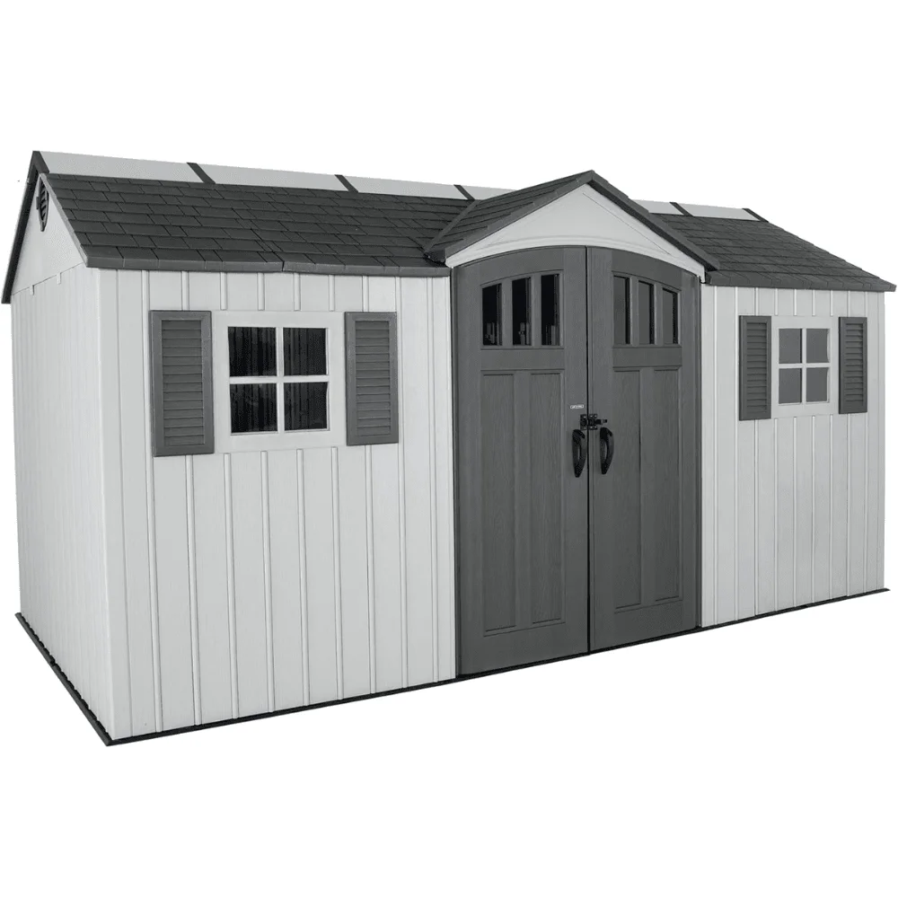 Lifetime 15′ x 8′ Dual Entry Outdoor Storage Shed, Gray