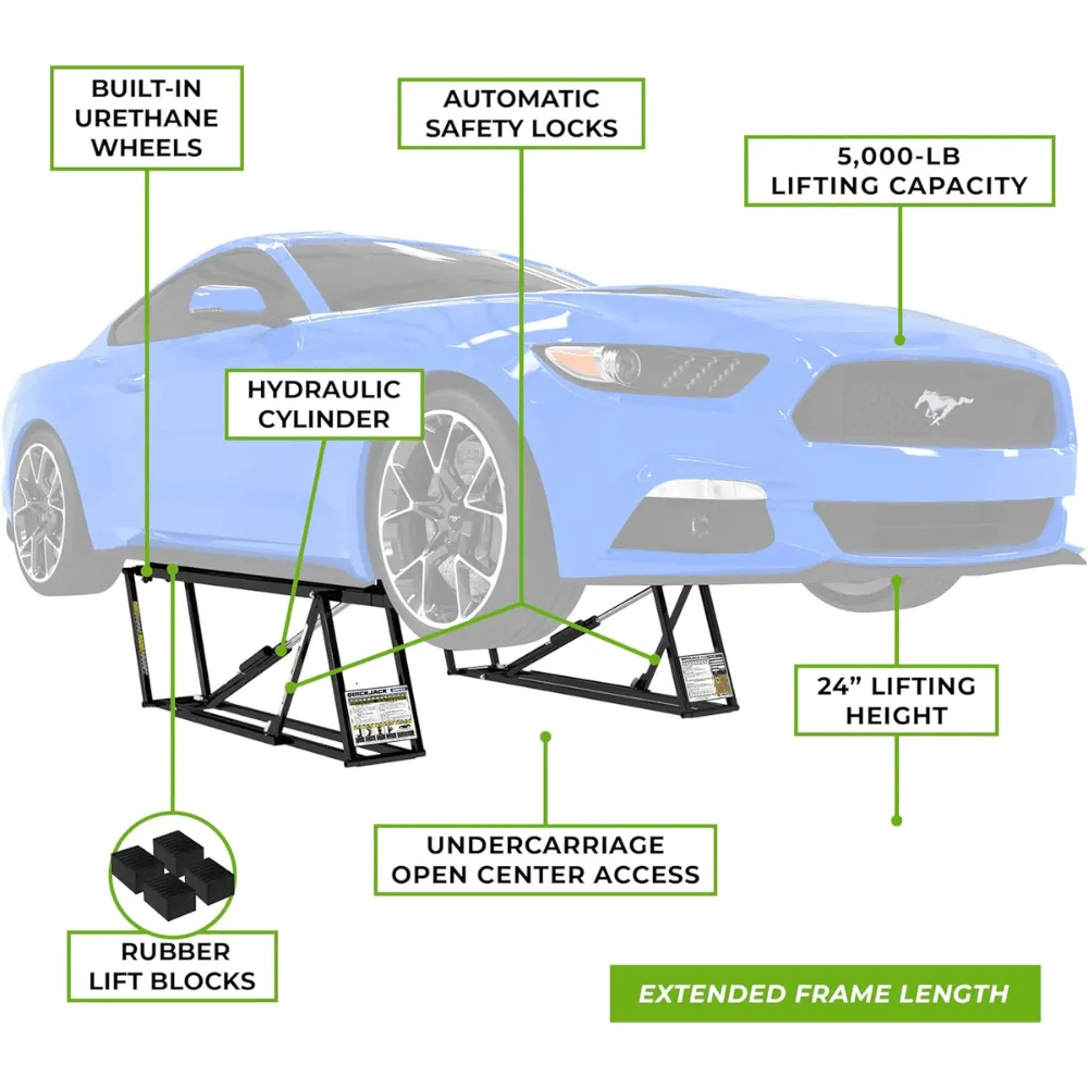 5,000 LB. Heavy-Duty Capacity – Easily lifts light trucks, cars, and extended-wheelbase vehicles.