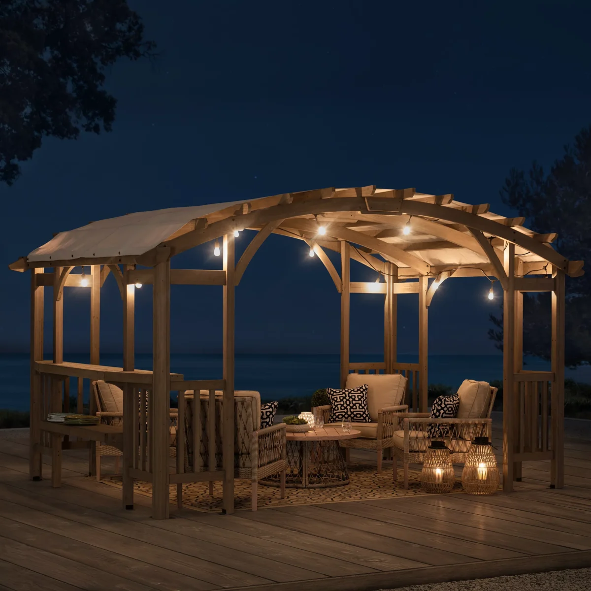 Enjoy years of comfort and style in your backyard with the Sunjoy Bellucci Arched Pergola — an inviting blend of rustic elegance, durability, and practicality.